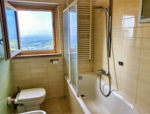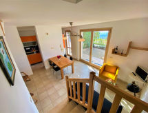 "Casa Chiara", 3-Zimmer-Haus 75 m2 auf 2 Stockwerken, Westlage. Zweckmässig und modern eingerichtet: Wohn-/Esszimmer mit Esstisch und TV (Flachbildschirm), Holzofen. Küche (Backofen, Geschirrspüler, 5 Flammen, Toaster, Wasserkocher, Mikrowelle, Tiefkühler, elektrische Kaffeemaschine, Kapseln für die Kaffeemaschine (Nespresso) extra). Ausgang zur Terrasse. Sep. WC. Obergeschoss: 1 Doppelzimmer. Ausgang zum Balkon. 1 Kinderzimmer mit 2 Betten (90 cm, Länge 200 cm). Bad/Bidet/WC. Heizung. Parkettböden, Natursteinböden. Terrasse 20 m2 teilweise überdacht, Westlage. Terrassenmöbel, Gartengrill, Liegestühle (2), Abstellkammer. Sehr schöne Panoramasicht auf die Landschaft. Zur Verfügung: Waschmaschine, Wäschetrockner, Bügeleisen, Kinderhochstuhl, Babybett bis 2 Jahre, Haartrockner. Internet (Wireless LAN, gratis). Parkplatz (1 Auto), Garage auf dem Grundstück (1 Auto) beim Haus. Bitte beachten: geeignet für Familien. Nichtraucher-Unterkunft. 1 Haustier/Hund erlaubt. Eigener Eingang. Es werden keine zusätzlichen Gebühren vor Ort fällig, ausgenommen der örtlichen Kurtaxe. Bettwäsche, Handtücher, Endreinigung und alle Energiekosten sind inkludiert. Nehmen Sie ihren Hund einfach mit anstatt ihn bei Verwandten oder in der Tier-Pension abzugeben. Denn Ihr Vierbeiner ist hier willkommen. Es hat ein überdachter Parkplatz. Es gibt ein Wäschetrockner.- Ausstattung