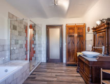 Alleinstehendes, sehr komfortables Landhaus "Chiara", 385 m.ü.M., umgeben von Wiesen und Feldern. 5 km vom Zentrum von Moncalvo, am Ortsrand, 200 m vom Zentrum von Ponzano Monferrato, 25 km vom Zentrum von Asti, ruhige, sonnige, erhöhte Lage auf einem Hügel, im Grünen. Zur Alleinbenutzung: Grundstück 2'000 m2 (eingezäunt), gepflegter Garten mit Pflanzen und Bäumen, Hof, Schwimmbad (10 x 5 m, 150 cm tief, saisonale Verfügbarkeit: 15.Mai. - 30.Okt.). Aussendusche, Gartenmöbel, Parkplatz auf dem Grundstück. Supermarkt 4 km, Bahnstation "Casale Monferrato" 22 km. Golfplatz (36 Loch) 27 km.Interior