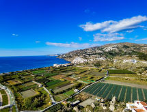"Casa del Sol", 5-Zimmer-Reihenhaus 182 m2 auf 2 Stockwerken. Einfach und zweckmässig eingerichtet: Wohn-/Esszimmer mit Digital-TV und Klimaanlage. Ausgang zur Terrasse mit Dusche/WC. Küche (Backofen, 4 Glaskeramikherd Platten, Toaster, Wasserkocher, Mikrowelle, Tiefkühler, elektrische Kaffeemaschine). Keine Heizmöglichkeit. Obergeschoss: 1 Zimmer mit 2 Betten (90 cm, Länge 190 cm), Klimaanlage. 1 Zimmer mit 2 Betten (90 cm, Länge 190 cm), Klimaanlage. 1 Zimmer mit 2 Betten (90 cm, Länge 190 cm), Klimaanlage. 1 Zimmer mit 1 franz. Bett (150 cm, Länge 190 cm), Klimaanlage. 2 Bäder/WC. Zur Verfügung: Waschmaschine, Bügeleisen, Kinderhochstuhl, Babybett, Haartrockner. Internet (Wireless LAN, gratis). VFT/GR/05884 Lehnen Sie sich zurück, schon beginnt das Feriengefühl im dazugehörigen Garten. Die drückende Hitze kann Körper und Gemüt stark belasten. Deshalb sind die Räumlichkeiten mit Klimaanlagen ausgestattet. Ein drahtloses lokales Netzwerk (WLAN) ist vorhanden.- Aktivitäten in der Nähe