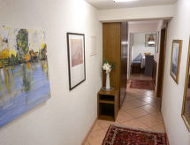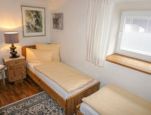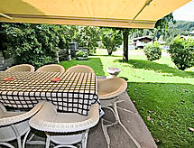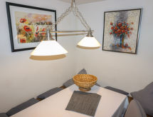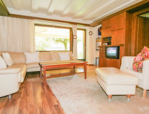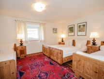 4-Zimmer-Wohnung 110 m2, im Erdgeschoss. Komfortabel eingerichtet: Wohnzimmer mit Sat-TV (Flachbildschirm), Stereoanlage. Ausgang zum Garten, zur Terrasse. Offenes Esszimmer. 1 Doppelzimmer mit Dusche. 1 Zimmer mit 1 Bett und 1 Doppelbett. 1 Zimmer mit 2 Betten. Kleine Kochnische (4 Kochplatten, Geschirrspüler, Toaster, Wasserkocher, Mikrowelle, elektrische Kaffeemaschine). Bad, Dusche, 2 sep. WC's. Terrasse. Terrassenmöbel. Zur Verfügung: Bügeleisen, Haartrockner. Internet (Wireless LAN, gratis). Bitte beachten: Maximal 1 Haustier/Hund erlaubt. Eigener Eingang. Das Wohnzimmer ist mit dem Esszimmer über eine kurze Treppe verbunden. Zweibeiner und Vierbeiner gemeinsam im Urlaub ist hier möglich, denn hier sind alle willkommen. Haustiere sind erlaubt. Im Idyllischen Garten geniessen Sie Erholung als ein Naturerlebnis. Ein Parkplatz ist vorhanden.- Charakteristik des Mietobjekts