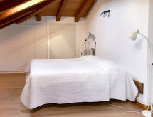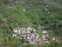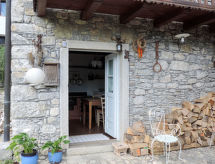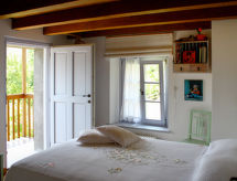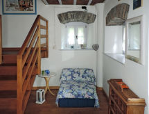 2-Zimmer-Haus 60 m2 auf 3 Stockwerken. Vollständig renoviert, rustikal und gemütlich eingerichtet: Wohnküche (Gasherd, 2 Flammen) mit Esstisch. Ausgang zum Gartensitzplatz. Obergeschoss: 1 Zimmer mit 1 franz. Bett (140 cm). Ausgang zum Balkon. Dusche/WC. 2. Obergeschoss: abgeschrägte, offene Galerie mit 1 Doppelbett. G-Heizung. Herrliche Panoramasicht auf die Landschaft. Zur Verfügung: Babybett. Internet (Wireless LAN, gratis). Bitte beachten: Nichtraucher-Haus. Es hat eine Veranda. Ein Internetanschluss ist vorhanden.- Ausstattung