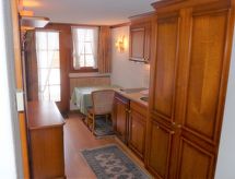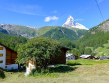 1-Zimmer-Wohnung 25 m2, im Erdgeschoss, Südlage. Einfach und zweckmässig eingerichtet: Wohn-/Schlafzimmer mit 2 Betten (90 cm, Länge 200 cm), TV. Ausgang zur Terrasse. Kleine Küche (2 Glaskeramikherd Platten, Toaster, Wasserkocher, Tiefkühler, elektrische Kaffeemaschine). Dusche/WC. Heizung. Kleine Terrasse, Südlage. Terrassenmöbel. Schöne Sicht auf das Matterhorn. Zur Verfügung: Haartrockner. Internet (Wireless LAN, gratis). Bitte beachten: Nichtraucher-Unterkunft. Kein Backofen in der Küche vorhanden. Ein Internetanschluss ist verfügbar.- Ausstattung