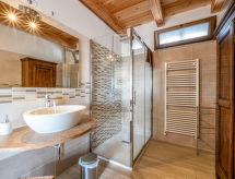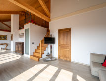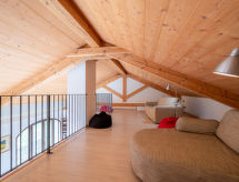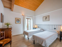 7-Zimmer-Doppelhaushälfte 300 m2 auf 2 Stockwerken. Schön und geschmackvoll eingerichtet: Wohn-/Esszimmer mit Esstisch und Stereoanlage. Ausgang zum Garten. Offene Küche (Backofen, Geschirrspüler, 4 Flammen, Toaster, Wasserkocher, Mikrowelle, Tiefkühler, elektrische Kaffeemaschine) mit Heizofen. Ausgang zum Garten. Sep. WC. Obergeschoss: Wohnzimmer, auf 2 Ebenen mit Sat-TV. 3 Zimmer, jedes Zimmer mit 1 franz. Bett (160 cm). 2 Zimmer, jedes Zimmer mit 2 Betten. 2 Duschen/WC. Fussbodenheizung. Natursteinböden. Terrasse Terrasse 25 m2, überdacht, Rasen 700 m2. Terrassenmöbel, Gartengrill (mobil). Panoramasicht. Zur Verfügung: Waschmaschine, Kinderhochstuhl, Babybett. Internet (Wireless LAN, gratis). Parkplatz (überdacht, 2 Autos) beim Haus. Bitte beachten: Nichtraucher-Unterkunft. Es werden keine zusätzlichen Gebühren vor Ort fällig. Bettwäsche, Handtücher, Endreinigung und alle Energiekosten sind inkludiert. 00504700003 Eine Terrasse ist vorhanden. Es hat eine Veranda. Es gibt ein überdachter Parkplatz. Ein Tischtennistisch ist vorhanden.- Ausstattung