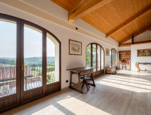 Sehr schönes Landhaus "Casa San Secondo", umgeben von Bäumen, Wiesen und Weinbergen. 2 km vom Zentrum von Cortazzone, 21 km vom Zentrum von Asti, auf einem Hügel. Zur Mitbenutzung: Grundstück 1'500 m2 (eingezäunt), gepflegter Garten mit Rasen, Liegewiese, Schwimmbad eingezäunt (15 x 5 m, 100 - 200 cm tief, saisonale Verfügbarkeit: 07.Mai. - 14.Okt.). Sitzplatz, Pergola, Poolpflege durch den Besitzer/Gärtner. Zur Alleinbenutzung: Tischtennis. Im Hause: Fitnessraum, Tischfussball. Parkplatz beim Haus auf dem Grundstück, Gemeinschaftsgarage. Einkaufsgeschäft 2 km, Supermarkt 6 km, Bahnstation "Asti" 21 km. Nahe gelegene Sehenswürdigkeiten: Turin 40 km, Alba 30 km. Besitzer wohnt in separatem Hausteil. Trainieren Sie im Fitnessraum und kehren Sie fit und energiegeladen aus dem Urlaub zurück.Interior