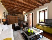 Schönes, komfortables, rustikales Rustico "Casa Santa Lucia", umgeben von Feldern. Hausausstattung: Klimaanlage, Solarium, Waschmaschine (zur Alleinbenutzung). Zufahrt & Parkmöglichkeiten: auf der Strasse. Ganzjährig Zufahrt bis zum Haus möglich. Lage: alleinstehende, ruhige, erhöhte, sonnige Lage. Aussicht von der Wohnung auf den Wald. Umgebung des Hauses: Grundstück (zur Alleinbenutzung), Swimming Pool (zur Alleinbenutzung). Poolheizung (extra) 30.00 pro Tag, bei der Ankunft zu bezahlen. Es ist obligatorisch zum Zeitpunkt der Buchung die Poolheizung anzufragen.Interior