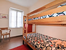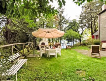 4-Zimmer-Doppelhaushälfte 90 m2 auf 2 Stockwerken. Komfortabel und rustikal eingerichtet: Wohn-/Esszimmer mit offenem Kamin, Sat-TV, Flachbildschirm, Radio, Stereoanlage und DVD. Ausgang zum Garten. Küche (4 Kochplatten, Backofen, Mikrowelle, Tiefkühler) mit Esstisch. Unteres Geschoss: 2 Doppelzimmer, jedes Zimmer mit 1 Doppelbett. 1 Zimmer mit 1 x 2 Etagenbetten. Dusche/Bidet/WC. Holzheizung. Terrassenmöbel. 2 Haustiere/Hunde erlaubt. Mit eingezäuntem Grundstück. Der prachtvolle Garten verspricht unvergessliche Ferien. Das Haus ist auch mit einer Feuerstelle ausgestattet. Ein DVD Spieler ist verfügbar.- Ausstattung