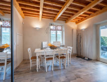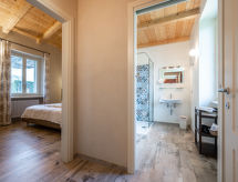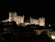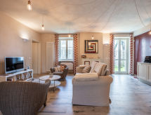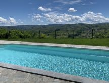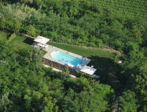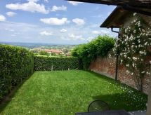 "Cascina Castello", 3-Zimmer-Doppelhaushälfte 95 m2 auf 2 Stockwerken. Objekt geeignet für 4 Erwachsene + 1 Kind. Sehr komfortabel und modern eingerichtet: Wohn-/Schlafzimmer mit 1 Diwanbett, Schwedenofen, Esstisch, Sat-TV und Stereoanlage. Ausgang zur Terrasse. 1 Zimmer mit 1 Doppelbett (180 cm, Länge 200 cm), Dusche/WC. Offene Küche (Geschirrspüler, 4 Induktionskochplatten, Toaster, Wasserkocher, Tiefkühler, elektrische Kaffeemaschine). Obergeschoss: 1 Zimmer mit 1 Doppelbett (180 cm, Länge 200 cm), Dusche/WC. Ausgang zum Balkon. Heizung, Klimaanlage. Natursteinböden. Balkon, 2 Terrassen teilweise überdacht, Garten, Rasen. Terrassenmöbel, Balkonmöbel, Gartengrill (mobil). Panoramasicht auf die Landschaft und das Städtchen. Zur Verfügung: Bügeleisen, Kinderhochstuhl, Babybett. Internet (Wireless LAN, gratis). Bitte beachten: Nichtraucher-Unterkunft. 2 Haustiere/Hunde erlaubt. Eigener Eingang. Es werden keine zusätzlichen Gebühren vor Ort fällig, ausgenommen der örtlichen Kurtaxe. Bettwäsche, Handtücher, Endreinigung und alle Energiekosten sind inkludiert. CIR:005050-CIM-00001 Mit eingezäuntem Grundstück. Die drückende Hitze kann Körper und Gemüt stark belasten. Deshalb sind die Räumlichkeiten mit Klimaanlagen ausgestattet. Geeignet für ein Barbecue. Es gibt eine Feuerstelle. Ein Pool ist verfügbar.- Ausstattung