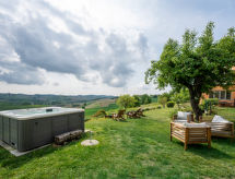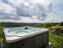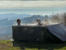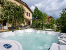 "Cascina Vicentini (SIC150)", 5-Zimmer-Doppelhaushälfte 120 m2 auf 2 Stockwerken. Rustikal und gemütlich eingerichtet: Wohnzimmer mit Stereoanlage. Ausgang zum Garten. Esszimmer mit Esstisch. Küche (4 Flammen, Toaster, Wasserkocher, Mikrowelle, elektrische Kaffeemaschine). Ausgang zum Garten. Sep. WC. Obergeschoss: 1 Zimmer mit 2 Betten und Dusche/WC. 1 Zimmer mit 1 Doppelbett und Dusche/WC. 1 Zimmer mit 1 franz. Bett (160 cm), Dusche/WC. Fussbodenheizung. Heizung nur verfügbar von 01.10. bis 30.04. Holzböden, Natursteinböden. Gartensitzplatz. Terrassenmöbel, Gartengrill (mobil). Panoramasicht. Zur Verfügung: Kinderhochstuhl, Babybett. Internet (Wireless LAN, gratis). Maximal 1 Haustier/Hund erlaubt. Bei Belegung mit weniger Personen als der maximalen Personenzahl stehen nicht alle Schlafzimmer zur Verfügung. CIR: 006004-BEB-00004 Auch ihr Hund ist hier ein gern gesehen Feriengast, schließlich gehört er zur Familie. Wir freuen uns, Ihnen in Ihren Ferien ein Frühstück anbieten zu können. Mit eigenem Whirlpool.,Nutzen Sie den Whirlpool. Es gibt eine Veranda. Es gibt ein Parkplatz. Das Haus ist auch mit einem Internetanschluss ausgestattet. Was wäre eine moderne Küche ohne Mikrowelle? Diejenige welche steht selbstverständlich zur Verfügung.- Ausstattung
