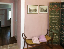 Gemütliches Landhaus "Cascina Vicentini", umgeben von Wiesen und Feldern. 100 m vom Zentrum von Sanico, am Ortsrand, 17 km vom Zentrum von Asti, 5 km vom Zentrum von Moncalvo. Zur Mitbenutzung: Grundstück 10'000 m2, Garten mit Pflanzen und Bäumen, Naturgarten, Wiese. Zur Alleinbenutzung: Grundstück 300 m2, Naturgarten, Wiese. Aussendusche, Sprudelbad. Im Hause: Waschmaschine (zur Mitbenutzung, extra). Frühstück möglich (extra). Parkplatz beim Haus auf dem Grundstück. Einkaufsgeschäft 2 km, Supermarkt 5 km, Bahnstation "Asti" 17 km, Freibad 5 km. Bitte beachten: Besitzer wohnt in separatem Hausteil. Eigentümer hat einen Hund.Interior