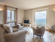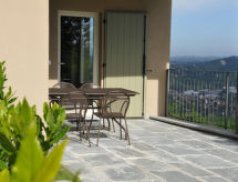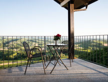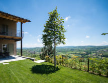"Cascina Vigne", 3-Zimmer-Doppelhaushälfte 95 m2 auf 2 Stockwerken. Objekt geeignet für 4 Erwachsene + 1 Kind. Komfortabel und modern eingerichtet: Wohn-/Schlafzimmer mit 1 Diwanbett, Schwedenofen, Esstisch, Sat-TV und Stereoanlage. Ausgang zur Terrasse. Offene Küche (Geschirrspüler, 4 Induktionskochplatten, Toaster, Wasserkocher, Tiefkühler, elektrische Kaffeemaschine). Sep. WC. Obergeschoss: 2 Zimmer, jedes Zimmer mit 1 Doppelbett (180 cm, Länge 200 cm), Dusche/WC. Ausgang zum Balkon. Heizung, Klimaanlage. Natursteinböden. Balkon, 2 Terrassen teilweise überdacht, Garten, Rasen. Terrassenmöbel, Balkonmöbel, Gartengrill (mobil). Sehr schöne Panoramasicht auf die Landschaft und das Städtchen. Zur Verfügung: Bügeleisen, Kinderhochstuhl, Babybett. Internet (Wireless LAN, gratis). Bitte beachten: Nichtraucher-Unterkunft. Eigener Eingang. Bettwäsche, Handtücher, Endreinigung und alle Energiekosten sind inkludiert. Es werden keine zusätzlichen Gebühren vor Ort fällig, ausgenommen der örtlichen Kurtaxe. CIR:005050-CIM-00001 Mit eingezäuntem Grundstück. Geeignet für ein Barbecue. Das Haus ist auch mit einem Pool ausgestattet.- Ausstattung