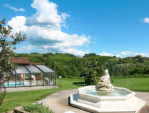 Komfortables Landhaus "Cascinotta". 4 km vom Zentrum von Bastia Mondovì, 15 km vom Zentrum von Mondovì, 35 km vom Zentrum von Alba, 63 km vom Meer, im Grünen. Zur Mitbenutzung: Grundstück 3'000 m2 (eingezäunt), gepflegter Garten mit Rasen und Pflanzen, Schwimmbad (9 x 4 m, 140 cm tief, saisonale Verfügbarkeit: 01.Mai. - 30.Okt.) mit Salzelektrolyse-Reinigungssystem. Aussendusche, Gartenmöbel, Grill, Poolpflege durch den Besitzer/Gärtner. Im Hause: Waschmaschine (zur Mitbenutzung, extra). Parkplatz beim Haus auf dem Grundstück. Einkaufsgeschäft 4 km, Supermarkt 9 km, Bahnstation "Fossano" 30 km, Sandstrand 70 km. Golfplatz (18 Loch) 28 km. Bitte beachten: Die Residenz wird durch elektrische Tore geschlossen. Besitzer wohnt in separatem Hausteil. Eigentümer hat einen Hund.Interior