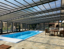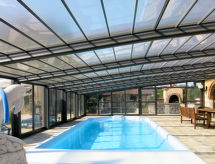 6-Zimmer-Doppelhaushälfte 200 m2 auf 3 Stockwerken. Geräumig, komfortabel und geschmackvoll eingerichtet: Wohnzimmer mit Sat-TV, CD und Stereoanlage. Ausgang zum Garten. Wohnküche (Backofen, Geschirrspüler, 4 Flammen, Toaster, Wasserkocher, Mikrowelle, Tiefkühler, elektrische Kaffeemaschine) mit Esstisch. Obergeschoss: grosses Wohn-/Schlafzimmer, auf 2 Ebenen mit 1 Doppelbett, Dusche/WC und Sat-TV. Grosses Wohn-/Schlafzimmer, auf 2 Ebenen mit 1 Doppelbett, Dusche/WC und Sat-TV. Fussbodenheizung. Holzböden. 3 Terrassen. Terrassenmöbel, Liegestühle. Panoramasicht. Zur Verfügung: Fliegengitter. Internet (Wireless LAN, gratis). Bitte beachten: Nichtraucher-Haus. Bei Belegung mit weniger Personen als der maximalen Personenzahl stehen nicht alle Wohneinheiten zur Verfügung. CIR: 00401400001 Das Grundstück ist komplett eingezäunt. Ein dazugehöriger idyllischer Garten lädt zum Verweilen in der Sonne ein. Es hat ein Pool. Informieren Sie sich im über den vorhandenen TV Apparat. Ob lokale Neuigkeiten oder internationale Nachrichten, mit dem Fernsehen sind sie stehts gut informiert.- Ausstattung