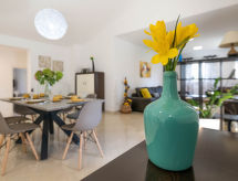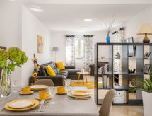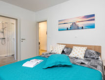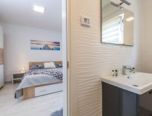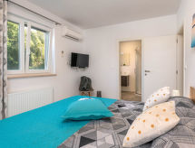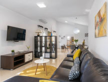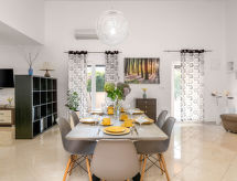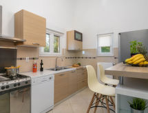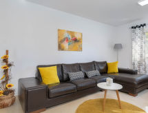 4-Zimmer-Haus 154 m2. Wohn-/Esszimmer mit 1 Doppeldiwanbett (160 cm, Länge 200 cm), Sat-TV (Flachbildschirm), Klimaanlage. Ausgang zur Terrasse. 1 Zimmer mit 1 franz. Bett (160 cm, Länge 200 cm), Sat-TV (Flachbildschirm). 2 Zimmer, jedes Zimmer mit 1 franz. Bett (160 cm, Länge 200 cm), Dusche/WC und Sat-TV (Flachbildschirm), Klimaanlage. Offene Küche (4 Kochplatten, Backofen, Geschirrspüler, Mikrowelle, Tiefkühler, elektrische Kaffeemaschine). Dusche/WC, sep. WC. Terrasse 20 m2, überdacht. Terrassenmöbel, Liegestühle. Zur Verfügung: Safe, Kinderhochstuhl, Babybett, Haartrockner. Internet (Wireless LAN, gratis). 1 Haustier/Hund erlaubt. Das Haus ist auch mit einem Babybett ausgestattet. Ein Geschirrspüler ist verfügbar. Das Haus ist auch mit einem Pool ausgestattet. Es gibt ein privater Pool. Ein Ofen ist vorhanden.- Ausstattung
