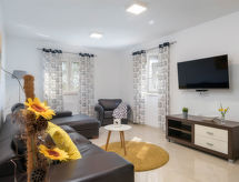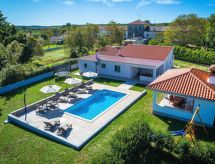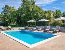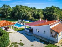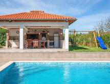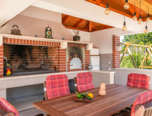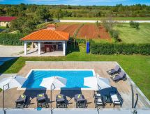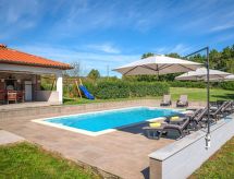 Marčana 11 km von Pula: Einfamilienhaus "Casetta Filip". Im Weiler Prodol, 5 km vom Zentrum von Marčana, ruhige, sonnige Lage, 6 km vom Meer. Zur Alleinbenutzung: Grundstück 5'000 m2 (eingezäunt), Garten mit Rasen, Schwimmbad eckig (8 x 4 m, 140 cm tief, saisonale Verfügbarkeit: 25.Apr. - 10.Okt.) mit Innentreppe. Aussendusche, Terrasse (20 m2), Gartenmöbel, Grill, Kinderspielplatz (Rutschbahn, Schaukel). Im Hause: Internetzugang, Trampolin, Waschmaschine. Parkplatz (für 3 Autos) beim Haus auf dem Grundstück. Einkaufsgeschäft 4 km, Restaurant 500 m, Kieselstrand 6 km, Felsstrand 6 km. Reitstall 2 km, Wanderwege ab Haus 100 m, Radweg 150 m. Privat: Aussenküche (4 Kochplatten, Backofen). Brotbackofen.Interior