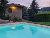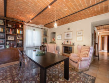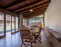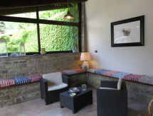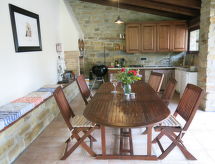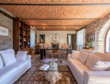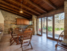 5-Zimmer-Landhaus 300 m2 auf 2 Stockwerken. Geschmackvoll und gemütlich eingerichtet: Wohn-/Esszimmer mit offenem Kamin und TV. Ausgang zum Garten, zur Terrasse. Küche (Backofen, Geschirrspüler, 4 Flammen, Toaster, Wasserkocher, Mikrowelle, Tiefkühler) mit offenem Kamin. Dusche/WC. Obergeschoss: 2 Zimmer, jedes Zimmer mit 1 Doppelbett. Ausgang zum Balkon. 2 Zimmer, jedes Zimmer mit 2 Betten. Dusche/WC. Heizung. Heizung nur verfügbar von 01.10. bis 15.04. Natursteinböden. Terrassenmöbel, Gartengrill, Liegestühle (8), Wintergarten, Sitzplatz. Zur Verfügung: Waschmaschine, Babybett. Internet (Wireless LAN). Es werden keine zusätzlichen Gebühren vor Ort fällig. Bettwäsche, Handtücher, Endreinigung und alle Energiekosten sind inkludiert. Eine Dusche ist präsent und die tägliche Reinigung unter der Brause braucht nicht viel Zeit, so bleibt mehr für den Urlaub. Ein Ort für Erholungsurlaube zum Sonnenbaden und Lesen im Garten. Es gibt eine Veranda. Geeignet zum Grillen. Es gibt ein Geschirrspüler. Ein privater Pool ist verfügbar.- Ausstattung
