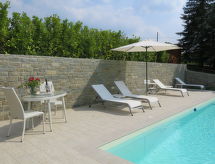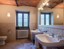 Sehr schönes, alleinstehendes, komfortables Landhaus "Castellaio", auf 2 Stockwerken, renoviert im Jahre 2020. Ausserhalb des Ortes, 2 km vom Zentrum von Vesime, sonnige, erhöhte Lage, im Grünen. Zur Alleinbenutzung: naturbelassenes Grundstück 3'000 m2, grosser Garten mit Rasen und Bäumen, Schwimmbad (10 x 5 m, 140 cm tief, saisonale Verfügbarkeit: 15.Mai. - 15.Okt.). Aussendusche, Poolhaus mit Kühlschrank, Pergola, Terrasse, Gartenmöbel, Poolpflege durch den Besitzer/Gärtner Parkplatz (für 4 Autos) beim Haus auf dem Grundstück. Lebensmittelgeschäft 2 km, Supermarkt 5 km. Nahe gelegene Sehenswürdigkeiten: Acqui Terme 26 km, Alba 34 km, Asti 45 km, Turin 95 m.Interior