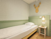 "Premium", 3-Zimmer-Wohnung 39 m2. Komfortabel eingerichtet: Wohn-/Esszimmer mit offenem Kamin und Flachbildschirm. Ausgang zum Balkon, zur Terrasse. 1 Doppelzimmer mit 2 Betten. 1 Zimmer mit 1 Bett. Kleine, offene Küche (2 Kochplatten, Geschirrspüler, Toaster, Wasserkocher, Mikrowelle, elektrische Kaffeemaschine). Dusche/WC. Balkon Terrasse. Terrassenmöbel. Zur Verfügung: Haartrockner. Internet (Wireless LAN, gratis). Bitte beachten: Rauchmelder, kein Fahrstuhl. Die Ferienwohnung befindet sich im Erdgeschoss oder im ersten oder zweiten Stock. Es ist nicht möglich, den Standort der Wohnung zu buchen. Je nach Lage verfügt die Ferienwohnung über eine Terrasse oder einen Balkon. Für nützliche Informationen fragen Sie ungeniert die Rezeption an. Um die Ansprüche unserer Gäste zufrieden zu stellen ist ebenfalls ein Restaurant vorhanden. Das Haus ist auch mit einer Feuerstelle ausgestattet. Es hat ein Parkplatz. Es gibt eine Sauna. Das Haus ist auch mit einem Innenpool ausgestattet. Es hat ein beheizter Pool. Ein Kinderbecken ist vorhanden. Das Haus ist auch mit einem drahtlosen lokalen Netzwerk (WLAN) ausgestattet. Es gibt ein Tischtennistisch.- Ausstattung
