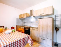 2-Zimmer-Wohnung 40 m2, im erhöhten Erdgeschoss. Einfach eingerichtet: Wohn-/Esszimmer mit Esstisch und TV (Flachbildschirm). Ausgang zum Garten. 1 Doppelzimmer mit 1 x 2 Etagenbetten. Kochnische (4 Kochplatten, Backofen). Dusche/Bidet/WC. Sicht auf die Berge und das Tal. Zur Verfügung: Haartrockner. Bitte beachten: Nichtraucher-Unterkunft. 1 Haustier/Hund erlaubt. CIPAT:022039-AT-011484 Ein Babybett ist verfügbar.- Ausstattung
