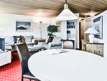 Residenz "Chalet Abendrot". Im Ortszentrum. Im Hause: Empfang, Aufenthaltsraum, Wireless LAN, Tischtennis, Billard, Fahrstuhl, Skiraum, Zentralheizung. Wäschewechsel (zusätzlich extra). Wohnungsreinigung (extra). Im Winter bitte Schneeketten mitbringen. Gemeinschaftsgarage (extra). Einkaufsgeschäft 400 m, Restaurant 10 m, Bushaltestelle "Firstbahn" 20 m, Bahnstation "Grindelwald Dorf" 800 m, Freibad 2.5 km, Hallenbad 600 m. Golfplatz (9 Loch) 2 km, Tennis 1 km, Minigolf 400 m, Sportzentrum 600 m, Bergbahn 800 m, Gondelbahn 180 m, Skiverleih 50 m, Skibushaltestelle 20 m, Langlaufloipe 1 km, Kinderspielplatz 600 m. Bekannte Seen in der Umgebung sind gut erreichbar: Thuner-/Brienzersee 18 km. Bitte beachten: Gratis Skibus. Indisches Restaurant "Golden India" im Hause. Das im Chaletstil erbaute Appartementhaus bietet einen Jugendraum, ein Kinderspielzimmer, eine grosse Autoeinstellhalle (Parkplatz CHF 98.00/Woche, Reservierung bei Ankunft). Modern-rustikale, luxuriöse und gemütliche Wohnungen, die meisten mit grosszügigem Balkon oder Terrasse und wunderbarem Blick auf die Bergwelt. Bitte beachten: Beschränkte Anzahl Garagenplätze. Garagenhöhe und -breite: 12 Parklpätze 2.09x2.06 m, 15 Parkplätze 1.65x2.06 m. Max. Gewicht: 2000 kg/Auto. Begeben Sie sich doch mal alleine, mit der Familie oder mit Freunden in der für alle zugängliche Eisbahn. Die schönsten Snowparks und diverse Snowboard Events findet man hier. In Grindelwald locken lange und kurvenreiche Schlittenabfahrten zum rasanten Wintervergnügen auf zwei Kufen an. Ein Golfplatz existiert in unmittelbarer Reichweite. Es erwartet eine besondere Golfherausforderung. Sportler können auf dem verfügbaren Tennisplatz ein Match austragen.Interior