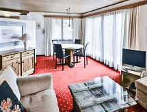 2-Zimmer-Wohnung 56 m2. Schön und gemütlich eingerichtet: Wohn-/Esszimmer mit Kabel-TV (Flachbildschirm). 1 Doppelzimmer. Offene Küche (Backofen, Geschirrspüler, 4 Glaskeramikherd Platten, Toaster, Wasserkocher, elektrische Kaffeemaschine). Bad, sep. WC. Balkon, Südlage und Nordlage. Sicht auf die Berge. Zur Verfügung: Haartrockner. Internet (Wireless LAN, gratis). Bitte beachten: Nichtraucher-Unterkunft. Maximal 1 Haustier/Hund erlaubt. Ein Fondue Set (Fleisch oder Käse) sowie ein Raclette Ofen kann an der Rezeption ausgeliehen werden. Residenz. Eine Badewanne ist vorhanden. Für nützliche Informationen fragen Sie ungeniert die Rezeption an. Sie gelangen mit dem Aufzug zur Etage der Wohnung. Ein Balkon ist verfügbar. Es gibt ein überdachter Parkplatz. Frische Bettwäsche verfügbar. Mit Reinigung. Es gibt ein Billardtisch. Ein Tischtennistisch ist verfügbar.- Charakteristik des Mietobjekts