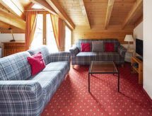 3-Zimmer-Wohnung 62 m2, im Dachgeschoss, Südostlage. Teilweise abgeschrägt: Wohn-/Esszimmer mit Kabel-TV (Flachbildschirm). 1 Doppelzimmer. 1 Doppelzimmer mit Waschbecken. Offene Küche (Backofen, Geschirrspüler, Toaster, Wasserkocher, elektrische Kaffeemaschine). Bad/WC. Balkon, Südlage und Ostlage. Terrassenmöbel. Sicht auf die Berge. Zur Verfügung: Haartrockner. Internet (Wireless LAN, gratis). Bitte beachten: Nichtraucher-Unterkunft. Maximal 1 Haustier/Hund erlaubt. Ein Fondue Set (Fleisch oder Käse) sowie ein Raclette Ofen kann an der Rezeption ausgeliehen werden. Für Erkundigen rund um den Besuch in der Unterkunft bitten wir Sie, sich an die Rezeption zu wenden. Objekt mit Lift. Ein Parkplatz ist verfügbar. Es gibt ein überdachter Parkplatz. Frische Bettwäsche verfügbar. Mit Reinigung. Das Haus ist auch mit einem Billardtisch ausgestattet.- Charakteristik des Mietobjekts