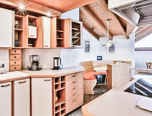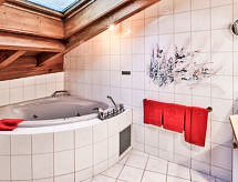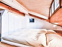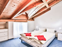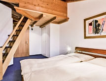 4-Zimmer-Wohnung 124 m2, im Dachgeschoss. Teilweise abgeschrägt, komfortabel und gemütlich eingerichtet: Wohn-/Esszimmer mit offenem Kamin und Kabel-TV (Flachbildschirm). Ausgang zum Balkon, Richtung Süden. 1 Zimmer mit 1 franz. Bett (180 cm, Länge 200 cm). 1 Zimmer mit 1 franz. Bett (140 cm, Länge 200 cm). 1 Doppelzimmer mit 2 Betten (90 cm, Länge 190 cm), Bad/Dusche/WC und Kabel-TV. Offene Küche (Backofen, Geschirrspüler, 4 Glaskeramikherd Platten, Toaster, Wasserkocher, Mikrowelle, elektrische Kaffeemaschine, Kapseln für die Kaffeemaschine (Nespresso) extra). Bad/WC, sep. WC. Balkon 16 m2, Südlage. Terrassenmöbel. Herrliche Sicht auf die Berge. Zur Verfügung: Haartrockner. Internet (Wireless LAN, gratis). Bitte beachten: Nichtraucher-Unterkunft. 1 Haustier/Hund erlaubt. Ein Fondue Set (Fleisch oder Käse) sowie ein Raclette Ofen kann an der Rezeption ausgeliehen werden. Zutritt zur Wohnung mit Aufzug und Treppe rauf. Residenz. Auskunft aller Art um einen gelungenen Aufenthalt ist an der Rezeption erhältlich. Es hat ein Balkon. Es hat eine Feuerstelle. Ein überdachter Parkplatz ist verfügbar. Informieren Sie sich im über den vorhandenen TV Apparat. Ob lokale Neuigkeiten oder internationale Nachrichten, mit dem Fernsehen sind sie stehts gut informiert. Ein WLAN (Drahtloses lokales Netzwerk) ist verfügbar. Frische Bettwäsche verfügbar. Mit Reinigung. Es gibt ein Billardtisch. Ein Tischtennistisch ist vorhanden. Ein Mikrowellenofen ist auch vorhanden.- Charakteristik des Mietobjekts