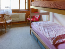 "Bel Air", 3-Zimmer-Wohnung 75 m2 auf 2 Stockwerken. Objekt geeignet für 2 Erwachsene + 2 Kinder. Zweckmässig und gemütlich eingerichtet: Wohn-/Esszimmer mit TV. Ausgang zum Balkon. Kochnische (3 Kochplatten, Backofen, Toaster, Wasserkocher, Mikrowelle, elektrische Kaffeemaschine, Racletteofen, Fondue Set (Käse)). Sep. WC. Obergeschoss: 1 Zimmer mit 2 Betten (90 cm, Länge 200 cm). 1 Kinderzimmer mit 1 x 2 Etagenbetten (90 cm, Länge 200 cm). Bad/WC. Teppichboden. Balkon 5 m2. Balkonmöbel, Liegestühle (2). Herrliche Sicht auf die Berge, die Skipiste, die Landschaft und die Ortschaft. Zur Verfügung: Babybett bis 2 Jahre. Internet (Wireless LAN). Garage Nr. 6. Bitte beachten: Nichtraucher-Unterkunft. Maximal 1 Haustier/Hund erlaubt. Eine Badewanne ist verfügbar. Für den Urlaub mit Hund oder Katze. Haustiere sind herzlich willkommen. Ein Parkplatz ist verfügbar. Es gibt ein überdachter Parkplatz. Es gibt ein Ofen.- Ausstattung