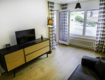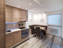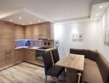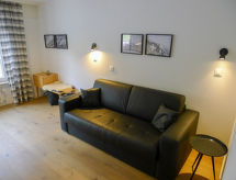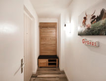 Gemütliches Mehrfamilienhaus "Gstein", 1'450 m.ü.M., renoviert im Jahre 2014. Im Ort, ruhige, sonnige Lage, 300 m vom Skigebiet. Zur Mitbenutzung: Grundstück, Garten. Im Hause: Fahrstuhl, Einstellraum für Fahrräder, Skiraum, Zentralheizung, Waschmaschine, Wäschetrockner (zur Mitbenutzung, extra). Zufahrt bis zum Haus (Bergstrasse). Parkplatz beim Haus. Einkaufsgeschäft, Lebensmittelgeschäft 50 m, Supermarkt 750 m, Restaurant, Bushaltestelle 50 m, Freibad, Thermalbad 900 m. Tennis 500 m, Luftseilbahn 150 m, Skilift, Skischule, Schlittelbahn 300 m, Eisfeld, Kinderspielplatz 500 m.Interior