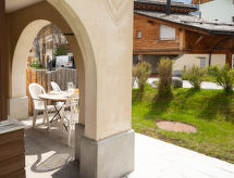 "Chesa Auricula 1.1", 3-Zimmer-Wohnung 92 m2, im Erdgeschoss. Geräumig und hell, gemütlich eingerichtet: Wohn-/Esszimmer mit TV (Flachbildschirm). Ausgang zur Terrasse. 1 Zimmer mit 2 Betten (90 cm, Länge 200 cm). 1 Doppelzimmer mit 1 Doppelbett (2 x 90 cm, Länge 200 cm). Küche (Backofen, Geschirrspüler, 4 Glaskeramikherd Platten, Toaster, Wasserkocher, Tiefkühler, elektrische Kaffeemaschine, Kapseln für die Kaffeemaschine (Nespresso) extra, Fondue Set (Käse)). Bad, Dusche/WC. Heizung. Gartensitzplatz 10 m2. Terrassenmöbel. Seitliche Sicht auf die Berge und die Ortschaft. Zur Verfügung: Bügeleisen, Haartrockner. Internet (Wireless LAN, gratis). Garage Nr. 11 (1 Auto), Höhe 205 cm, Breite 220 cm. Bitte beachten: geeignet für Familien. Nichtraucher-Unterkunft, Nichtraucher-Haus. 1 Haustier/Hund erlaubt. Der prachtvolle Garten verspricht unvergessliche Ferien. Das Haus ist auch mit einer Terrasse ausgestattet. Das Haus ist auch mit einer Veranda ausgestattet. Es gibt ein überdachter Parkplatz. Sollte das Wetter einmal nicht mitspielen, ist auch ein Fernseher vorhanden.- Charakteristik des Mietobjekts