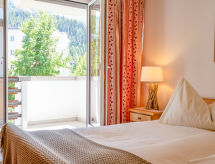 "Chesa Derby 27", 3-Zimmer-Wohnung 65 m2 im 3. Stock. Hell, teilweise renoviert im Jahre 2022, gemütlich eingerichtet: offenes Wohn-/Esszimmer mit Esstisch und TV (Flachbildschirm). Ausgang zum Balkon, Richtung Süden. 1 Doppelzimmer mit 1 Doppelbett (2 x 90 cm, Länge 200 cm). Ausgang zum Balkon. 1 Zimmer mit 1 Bett (90 cm, Länge 190 cm), 1 x 1 Etagenbetten (90 cm, Länge 190 cm). Kleine Küche (Backofen, Geschirrspüler, 4 Glaskeramikherd Platten, Toaster, Wasserkocher, elektrische Kaffeemaschine, Kapseln für die Kaffeemaschine (Nespresso) extra, Fondue Set (Käse)). Bad/Bidet/WC, sep. WC. Heizung. Balkon 10 m2. Balkonmöbel. Seitliche Sicht auf die Berge. Zur Verfügung: Haartrockner. Internet (Wireless LAN, gratis). Garage Nr. G (1 Auto), Höhe 200 cm, Breite 220 cm. Bitte beachten: geeignet für Familien Wohnung auf Parkplatzseite. Nichtraucher-Unterkunft. Objekt verfügt über einen Aufzug. Ein Babybett ist vorhanden. Es hat ein Geschirrspüler. Das Haus ist auch mit einem überdachten Parkplatz ausgestattet.- Ausstattung