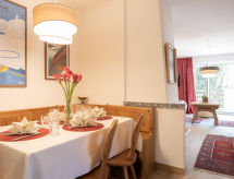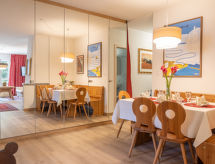 St. Moritz-Bad: Altes Mehrfamilienhaus "Chesa Derby 27", auf 5 Stockwerken. Im Ortszentrum von St.Moritz-Bad, zentrale Lage in einem Wohnquartier, 400 m vom Waldrand, 400 m vom See, 800 m vom Skigebiet. Im Hause: Fahrstuhl, Einstellraum für Fahrräder, Skiraum, Zentralheizung, Waschmaschine (extra), Wäschetrockner (zur Mitbenutzung, extra). Gemeinschaftsgarage. Einkaufsgeschäft 100 m, Supermarkt 700 m, Restaurant, Bar 30 m, Bäckerei 450 m, Fahrradverleih 100 m, Bushaltestelle "St. Moritz Bad, Hallenbad" 260 m, Bahnstation 1.9 km, Hallenbad 300 m, Thermalbad "Heilbadzentrum St.Moritz" 450 m, See St. Moritzer See 400 m. Golfplatz (18 Loch) 7.2 km, Surfschule 5.2 km, Tennis, Tennishalle 850 m, Minigolf 170 m, Reitstall 2.7 km, Wanderwege ab Haus, Radweg 400 m, Luftseilbahn, Skilift, Skipisten 800 m, Skiverleih 100 m, Skibushaltestelle 150 m, Skischule 1.9 km, Kinderskischule 1.9 km, Schlittelbahn 5.5 km, Langlaufloipe 300 m, Eisfeld 500 m, Kinderspielplatz 400 m. Nahe gelegene Sehenswürdigkeiten: Segantini Museum 2.1 km, Engadiner Museum 1.1 km, Mili Weber-Haus 2.8 km, Olympia Bob Run mit Museum 2.5 km, Nietzsche Museum in Sils-Maria 9.4 km. Bekannte Skigebiete sind gut erreichbar: Corviglia Piz Nair 800 m, Corvatsch - Furtschellas 6.4 km, Diavolezza - Lagalb 19.6 km. Bekannte Seen in der Umgebung sind gut erreichbar: St.Moritzer See 400 m, Silvaplaner See 5.1 km, Silser See 9.4 km. Wandergebiete: Stazerwald & Stazersee, Corviglia Piz Nair, Muottas Muragl. Die Schlüsselübergabe findet bei der Agentur Interhome in St Moritz Bad statt. St. Moritz ist ein für Bergwanderungen und Bergtouren geeigneter Ausgangspunkt. Wie auch immer Sie sich entscheiden, für einen Tagesausflug oder mehrtägige Touren, das Gebiet ist flach und beliebt bei Wanderer. Eine beliebte Surfdestination mit erfrischenden Wellen. Die Wellenreiter freut es hier zu sein. Die umliegende Peripherie ist ebenfalls ein erstklassiges Langlauf-Skigebiet. Eine Eislaufbahn wird in der Nähe betrieben. Nutzen Sie das Angebot zum Schlittschuhlaufen. Für Snowboarder ein wahrlich ausgezeichnetes Urlaubsziel. In St. Moritz locken lange und kurvenreiche Schlittenabfahrten zum rasanten Wintervergnügen auf zwei Kufen an. Insgesamt stehen in der Region abwechslungsreiche Reitwege zur Auswahl Ideal für gelungene Reiterferien. Es stehen Tennisplätze zur Verfügung. So können Tennisbegeisterte können in allen Levels trainieren.Interior