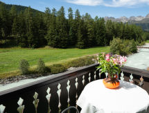 "Chesa Misaun", 3-Zimmer-Wohnung 95 m2 auf 2 Stockwerken, im Dachgeschoss. Gemütlich und mit viel Holz eingerichtet: grosses Wohn-/Esszimmer mit offenem Kamin, Essecke und Sat-TV (Flachbildschirm), Radio. Ausgang zum Balkon, Richtung Süden. 1 Zimmer mit 1 Doppelbett (2 x 90 cm, Länge 185 cm), Bad/WC. Ausgang zum Balkon. Küche (Backofen, Geschirrspüler, 4 Glaskeramikherd Platten, Toaster, Wasserkocher, Mikrowelle, Tiefkühler, elektrische Kaffeemaschine, Kapseln für die Kaffeemaschine (Nespresso) extra, Racletteofen, Fondue Set (Chinoise)). Dachgeschoss: (steile Treppe) abgeschrägte, offene grosse Galerie mit 1 Bett (120 cm, Länge 200 cm), 1 Doppelbett (2 x 90 cm, Länge 200 cm), Dusche/WC. 2 kleine Balkone. Terrassenmöbel (3). Sehr schöne Sicht auf die Berge, den Fluss und den Wald. Zur Verfügung: Haartrockner. Internet (Wireless LAN, gratis). Garage Nr. 6 in 300 m, Höhe 200 cm, Breite 225 cm. Maximal 1 Haustier/Hund erlaubt. Ein drahtloses lokales Netzwerk (WLAN) ist vorhanden.- Charakteristik des Mietobjekts