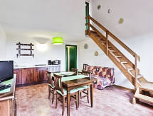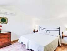 "Ciclamino", 3-Zimmer-Wohnung 58 m2 im 1. Stock. Wohn-/Esszimmer mit 1 Doppeldiwanbett (160 cm, Länge 190 cm), Sat-TV und Flachbildschirm. Ausgang zur Terrasse. 1 Doppelzimmer. Kochnische (4 Kochplatten, Geschirrspüler, Mikrowelle, elektrische Kaffeemaschine). Dusche/Bidet/WC. Obergeschoss: 1 abgeschrägtes Zimmer mit 2 Betten und sep. WC. Ausgang zum Balkon. Klimaanlage (extra). Terrasse 6 m2. Terrassenmöbel. Panoramasicht auf das Schwimmbad und die Landschaft. Maximal 1 Haustier/Hund erlaubt. Residenz. Duschen ist belebend und eine Brause ist zugegen. Nehmen Sie ihren Hund einfach mit anstatt ihn bei Verwandten oder in der Tier-Pension abzugeben. Denn Ihr Vierbeiner ist hier willkommen. Für Erkundigen rund um den Besuch in der Unterkunft bitten wir Sie, sich an die Rezeption zu wenden. Es hat eine Terrasse. Es hat ein Pool. Das Haus ist auch mit einem Kinderbecken ausgestattet. Sollte das Wetter einmal nicht mitspielen, ist auch ein Fernseher vorhanden. Es hat ein Tischtennistisch.- Charakteristik des Mietobjekts