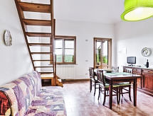 8 km von Montaione: Die Residenz I Calanchi liegt im Herzen der Toskana zwischen Florenz, Siena, Pisa, San Gimignano und Volterra und an Hügellage am Ortsrand von Sughera (Montaione). Umgeben von hohen Zypressen, Wiesen, Getreidefeldern, Olivenhainen und dem mediterranen Wald ist es ideal gelegen für alle, die Erholung suchen und Liebhaber von Meer, Bergen und Kunststädten sind. Die Feriensiedlung bietet insgesamt 16 separate Wohnungen an, wovon 13 in unserem Angebot sind. Den Gästen steht eine ausgestattete Laube zur Verfügung, um im Freien zu frühstücken. Mountain-Bike-Vermietung an Ort. Für Fahrrad- und Wander-Begeisterte gibt es ein weitverzweigtes Wegnetz. Zahlreiche Restaurants in der Gegend. Residenz "I Calanchi", 341 m.ü.M.. 25 km vom Zentrum von S. Gimignano, Certaldo, 30 km vom Zentrum von Volterra, 50 km vom Zentrum von Firenze, Pisa. Zur Mitbenutzung: Garten, Schwimmbad (16 x 8 m, 150 - 150 cm tief, saisonale Verfügbarkeit: 09.Apr. - 15.Okt.). Kinderbecken, Aussendusche, Tischtennis, Boccia, Volleyballfeld, Terrasse, Gartenmöbel, Grill. Im Hause: Empfang, Internetzugang (alles inkl.), Waschmaschine (extra), Heizung vor Ort zu zahlen (01.11. - 15.04.), Heizung nur verfügbar von 01.11. bis 15.04.. Brötchenservice auf Anfrage (extra). Parkplatz beim Haus. Lebensmittelgeschäft 3 km, Supermarkt 8 km, Restaurant 3 km, Bar 3 km, Bahnstation "Castelfiorentino" 15 km. Golfplatz 10 km, Reitstall 2 km. Nahe gelegene Sehenswürdigkeiten: Pisa 57 km, Volterra 35 km, Firenze 62 km, Lucca 57 km, Siena 67 km, San Gimignano 25 km. Pferderitte sind eine beliebte Aktivität hier, ideal für diejenigen, die Pferde und die Natur lieben.Interior
