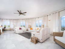 Cumbre del Sol: Grosses Haus "Cielo Azul", auf 2 Stockwerken. Im Ortsteil Cumbre del Sol, 8 km vom Zentrum von Moraira, ruhige, sonnige Lage auf einem Hügel, im Villenviertel, 2.5 km vom Meer, 2.5 km vom Strand. Zur Alleinbenutzung: Grundstück 1'000 m2 (eingezäunt), Schwimmbad nierenförmig (5 x 10 m, 100 - 210 cm tief, saisonale Verfügbarkeit: 01.Jan. - 31.Dez.) mit Innentreppe. Parkplatz. Supermarkt, Restaurant, Bäckerei 700 m, Sandstrand "Playa Ampolla" 8 km, Kieselstrand "Cala Moraig" 2.5 km. Bitte beachten: Fahrzeug empfohlen. Geeignet für Familien.Interior