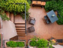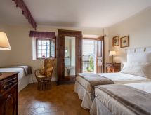 3-Zimmer-Reihenhaus 75 m2 auf 3 Stockwerken. Antik und geschmackvoll eingerichtet: Wohnzimmer mit Sat-TV. Ausgang zum Gartensitzplatz. Küche (4 Kochplatten, Backofen, Mikrowelle, elektrische Kaffeemaschine) mit Esstisch, Schwedenofen. Ausgang zum Gartensitzplatz. Dusche/Bidet/WC. Obergeschoss: (steile Treppe) 1 Zimmer mit 3 Betten. Ausgang zum Balkon. 2. Obergeschoss: (Wendeltreppe) 1 offenes Zimmer mit 1 Doppelbett (200 cm). Ausgang zum Balkon. G-Heizung. Heizung nur verfügbar von 25.09. bis 15.05. 2 Balkone. Balkonmöbel, Liegestühle (2). Sicht auf den See. Zur Verfügung: Bügeleisen. Internet (Wireless LAN, extra). Bitte beachten: für Kleinkinder nicht geeignet. Nichtraucher-Unterkunft. Eigener Eingang. CIR:10300300014 Ein Balkon ist verfügbar. Das Haus ist auch mit einer Veranda ausgestattet. Es hat eine Feuerstelle.- Ausstattung