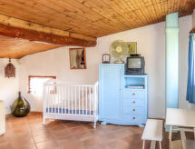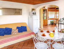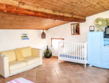 "Claudio", 3-Zimmer-Haus 80 m2 auf 2 Stockwerken. Rustikal und gemütlich eingerichtet: Wohnzimmer mit offenem Kamin und Esstisch. 1 offenes Zimmer mit 1 x 4 Etagenbetten (140 cm). Kochnische (4 Kochplatten, Tiefkühler, elektrische Kaffeemaschine, Kombinationsmikrowelle). Dusche/WC. Obergeschoss: (steile Treppe) 1 abgeschrägtes grosses Zimmer, Deckenhöhe 150 - 220 cm mit 1 franz. Bett (140 cm), TV. Keine Heizmöglichkeit. Balkon 30 m2. Balkonmöbel, Gartengrill (mobil), Liegestühle (1). Herrliche Panoramasicht auf die Berge und die Landschaft. Zur Verfügung: Waschmaschine, Bügeleisen, Babybett. 1 Haustier/Hund erlaubt. CITRA: 008001-LT-0008- Ausstattung
