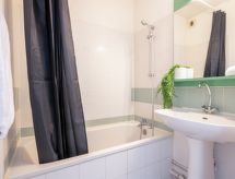 3-Zimmer-Wohnung 34 m2 im 1. Stock. Einfach und zweckmässig eingerichtet: Wohn-/Esszimmer mit TV (Flachbildschirm). Ausgang zur Terrasse. 1 Zimmer mit 1 franz. Bett (140 cm, Länge 190 cm). 1 Zimmer mit 2 Betten (90 cm, Länge 190 cm). Kochnische (4 Kochplatten, Geschirrspüler, Toaster, Mikrowelle, elektrische Kaffeemaschine). Bad, sep. WC. Kleine Terrasse 10 m2. Terrassenmöbel. Zur Verfügung: Internet (Wireless LAN, extra). Bitte beachten: Rauchmelder. Bequem mit dem Lift bis vor die Haustür. Es gibt ein Geschirrspüler. Ein Pool ist verfügbar. Informieren Sie sich im über den vorhandenen TV Apparat. Ob lokale Neuigkeiten oder internationale Nachrichten, mit dem Fernsehen sind sie stehts gut informiert.- Charakteristik des Mietobjekts