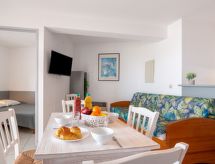 Canet Plage: Residenz "Copacabana". 30 Wohnungen in der Residenz. Im Ortsteil Canet Sud, 50 m vom Meer, 50 m vom Strand. Zur Mitbenutzung: Schwimmbad (10 x 15 m, 60 - 180 cm tief, saisonale Verfügbarkeit: 01.Jun. - 15.Sep.). In der Anlage: Fahrstuhl. Einkaufsgeschäft, Lebensmittelgeschäft 200 m, Einkaufszentrum 8 km, Restaurant, Bäckerei 200 m, Bahnstation "Perpignan" 12 km, Sandstrand 50 m, Freibad 3 km, Hallenbad 3 km, See Etang de Canet 1 km. Sporthafen 8 km, Golfplatz (18 Loch) 8 km. Nahe gelegene Sehenswürdigkeiten: Perpignan 12 km, Collioure 25 km, Banyuls 37 km, Espagne 35 km, Andorre 180 km, Barcelone 200 km. Bekannte Seen in der Umgebung sind gut erreichbar: Villeneuve de la Raho 19 km, St Jean Pla de Corts 39 km, Gorges du Gouleyrous 42 km. Wandergebiete: St Martin du Canigou 70 km, Massif du Canigou 77 km, Lac des Bouillouses 105 km. Bitte beachten: Weitere Unterkünfte sind buchbar.Interior