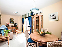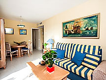 "Coral Beach 02", 2-Zimmer-Wohnung 50 m2 im 6. Stock, Südwestlage. Objekt geeignet für 2 Erwachsene + 2 Kinder. Hell, komfortabel und geschmackvoll eingerichtet: Wohn-/Esszimmer mit 1 Doppeldiwanbett (140 cm, Länge 190 cm), Sat-TV, Digital-TV, Klimaanlage und Warmluftheizung. Ausgang zur Terrasse. 1 Zimmer mit 1 franz. Bett. Küche (4 Kochplatten, Backofen, Mikrowelle). Ausgang zum Balkon. Bad/Bidet/WC. Terrassenmöbel. Sehr schöne Panoramasicht auf das Meer, die Berge, das Schwimmbad und die Landschaft. Zur Verfügung: Waschmaschine, Bügeleisen, Haartrockner. Geeignet für Familien. AT-440245-A Eine Badewanne ist vorhanden. Sie gelangen mit dem Aufzug zur Etage der Wohnung. Das Grundstück ist komplett eingezäunt. Überdies werden sie verwöhnt mit einem freien Blick auf das Meer. Eine Terrasse ist verfügbar. Das Haus ist auch mit einem Kinderbecken ausgestattet.- Ausstattung