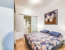 1-Zimmer-Wohnung 30 m2, im Erdgeschoss. Objekt geeignet für 2 Erwachsene. Vollständig renoviert im Jahre 2017, komfortabel und modern eingerichtet: Wohn-/Esszimmer mit 1 franz. Bett (1 x 160 cm, Länge 200 cm), TV und Internationale TV-Sender (Flachbildschirm), Klimaanlage. Ausgang zur Terrasse. Kochnische (Backofen, 4 Glaskeramikherd Platten, Toaster, Wasserkocher, Mikrowelle, elektrische Kaffeemaschine). Dusche/WC. Grosse Terrasse 31 m2 teilweise überdacht, kleine Terrasse 18 m2. Terrassenmöbel, Liegestühle (2). Sicht auf den Garten. Zur Verfügung: Waschmaschine, Bügeleisen, Haartrockner. Internet (Wireless LAN, gratis). Parkplatz (1 Auto). Bitte beachten: für Kleinkinder nicht geeignet. Eigener Eingang, Rauchmelder. Mit eingezäuntem Grundstück. In unserem Garten bietet sich Ihnen viel Platz für Entspannung und Erholung. Es hat ein Parkplatz. Es gibt ein Pool. Es hat ein privater Pool.- Ausstattung
