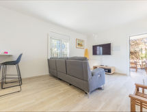 Urb Cambrils Mediterra: Alleinstehendes, komfortables Haus "Cornelia Pucho". Ausserhalb des Ortes, 3 km vom Zentrum von Cambrils, 600 m vom Meer, 600 m vom Strand, an einer Strasse. Zur Alleinbenutzung: Grundstück 230 m2 (eingezäunt), Garten mit Rasen 65 m2, Bäumen. Laube (7 m2), Grill. Zufahrt bis zum Haus. Treppenweg (6 Stufen) bis zum Haus. Parkplatz beim Haus, Einzelgarage. Einkaufsgeschäft, Bar 500 m, Bushaltestelle 3 km, Bahnstation 3 km. Golfplatz 4 km. Nahe gelegene Sehenswürdigkeiten: Parque temático PORTAVENTURA 8 km, Parque aquático AQUOPOLIS 10 km, Spa AQUUM 10 km, Karting 7 km, Paintball 10 km. Bitte beachten: Fahrzeug empfohlen. Eisenbahnlinie 100 m vom Haus. Surfen kann man einfach nicht beschreiben. Wellenreiten muss man erlebt haben. Hier bietet sich die Chance. Ein ganzer Tag tolle Abenteuer, voller Spaß und Action ist im nahen Freizeitpark mehr als garantiert.Interior