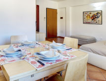 Kleine Residenz "Cristal Blu", auf 3 Stockwerken. 21 Wohnungen in der Residenz. Im Ortsteil Santa Teresa, 300 m vom Zentrum von Santa Teresa di Gallura, zentrale Lage, 800 m vom Meer. Zur Mitbenutzung: Hof, Schwimmbad (12 x 6 m, 80 - 160 cm tief, saisonale Verfügbarkeit: 01.Apr. - 27.Okt.). Aussendusche. In der Anlage: Empfang, Aufenthaltsraum, Internetzugang, Wireless LAN, Waschmaschine (zur Mitbenutzung), Fahrradverleih. Zentralparkplätze. Sandstrand "'Rena Bianca'" 800 m. Jacht-Hafen 200 m. Das Foto ist nur ein Wohnungsbeispiel. Die Mietobjekte können sich in Wohnfläche, Raumaufteilung, Ausstattung und Einrichtung unterscheiden. Einfach mal wieder auf einer positiven Welle surfen? Der Ort lädt zum Wellenritt ein.Interior