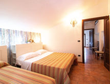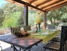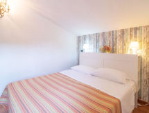 4-Zimmer-Villa 115 m2 auf 2 Stockwerken. Zweckmässig und komfortabel eingerichtet: grosses Wohn-/Esszimmer mit offenem Kamin, Küchenblock und Sat-TV (Flachbildschirm), Klimaanlage. Ausgang zum Garten, zur Loggia. 1 Doppelzimmer. Kochnische (4 Kochplatten, Backofen, Geschirrspüler, Toaster, Wasserkocher, Mikrowelle, Tiefkühler). Dusche/Bidet/WC. Obergeschoss: 1 Doppelzimmer. 1 Zimmer mit 1 Bett und 1 Doppelbett. Dusche/Bidet/WC. Zur Verfügung: Waschmaschine, Fliegengitter, Haartrockner. Internet (Wireless LAN). 1 kleines Haustier/Hund erlaubt. Eine Feuerstelle ist verfügbar. Unabhängiger sind Sie mit der eigens vorhandenen Waschmaschine.- Ausstattung