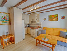 "Damara V", 2-Zimmer-Wohnung 50 m2 im 6. Stock. Objekt geeignet für 2 Erwachsene + 1 Kind. Zweckmässig und komfortabel eingerichtet: Wohn-/Esszimmer mit 1 Diwanbett, Digital-TV, Klimaanlage und Warmluftheizung. Ausgang zur Terrasse. 1 Zimmer mit 1 franz. Bett und Ventilator. Ausgang zum Balkon. Kleine, offene Küche (Backofen, 3 Glaskeramikherd Platten, Toaster, Wasserkocher, Mikrowelle, elektrische Kaffeemaschine). Dusche/WC. Terrasse. Terrassenmöbel. Seitliche Sicht auf das Meer. Zur Verfügung: Waschmaschine, Bügeleisen, Haartrockner. 1 kleines Haustier/Hund erlaubt. VT-489674-A Eine Dusche zur ist Stelle. Nur schnell shampooniert und abgeduscht und schon kann ein neuer Urlaubstag beginnen. Objekt mit Aufzug. Treten Sie ein und spüren die erfrischende Brise der Klimaanlage. Es gibt ein Balkon. Eine Waschmaschine ist zum gebrauch vorhanden.- Ausstattung