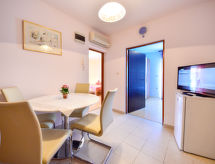 Mehrfamilienhaus "Damir". Im Ortsteil Banjol, 1.2 km vom Zentrum von Rab, ruhige, sonnige Lage, 500 m vom Meer, 500 m vom Strand, im Grünen. Zur Mitbenutzung: Grundstück 550 m2. Im Hause: Internetzugang. Parkplatz beim Haus auf dem Grundstück. Einkaufsgeschäft 600 m, Restaurant, Kieselstrand 700 m, betonierter Strand 500 m.Interior