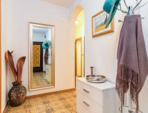 2-Zimmer-Wohnung 65 m2, im Erdgeschoss. 1 Zimmer mit 1 Doppelbett und Klimaanlage. Ausgang zum Balkon. 1 Zimmer mit 1 Doppelbett und Klimaanlage. Ausgang zum Balkon. Wohnküche (Backofen, Geschirrspüler, 4 Glaskeramikherd Platten, Mikrowelle, Tiefkühler, elektrische Kaffeemaschine) mit Esstisch, Sat-TV. Bad/WC. Klimaanlage (extra). 2 Balkone 4 m2, Terrasse 8 m2, überdacht. Terrassenmöbel, Balkonmöbel, Gartengrill. Zur Verfügung: Waschmaschine. Internet (Wireless LAN, gratis). Bitte beachten: Nichtraucher-Haus. Eigener Eingang. Der Genuss von Tabakwaren ist nicht gestattet. Mit eingezäuntem Grundstück. Ein Ort für Erholungsurlaube zum Sonnenbaden und Lesen im Garten. Die drückende Hitze kann Körper und Gemüt stark belasten. Deshalb sind die Räumlichkeiten mit Klimaanlagen ausgestattet. Es hat ein Balkon. Ein Mikrowellenofen ist auch vorhanden.- Ausstattung