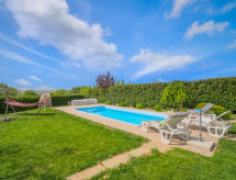 3-Zimmer-Wohnung 94 m2, im Erdgeschoss. Wohn-/Esszimmer mit 1 Diwanbett und Sat-TV (Flachbildschirm), Klimaanlage. Ausgang zur Terrasse. 1 Zimmer mit 1 franz. Bett (180 cm, Länge 200 cm), Dusche/WC. 1 Zimmer mit 2 Betten (90 cm, Länge 200 cm). Offene Küche (Backofen, Geschirrspüler, 4 Glaskeramikherd Platten, Mikrowelle, Tiefkühler, elektrische Kaffeemaschine). 2 Duschen/WC. Warmluftheizung. Terrasse 12 m2, überdacht. Terrassenmöbel. Schöne Sicht auf das Schwimmbad und die Landschaft. Zur Verfügung: Waschmaschine, Safe. Internet (Wireless LAN, gratis). Bitte beachten: 1 Haustier/Hund erlaubt. Eigener Eingang. Das Grundstück ist komplett eingezäunt. Geeignet für ein Barbecue. Ein privater Pool ist vorhanden. Mit Reinigung.- Ausstattung