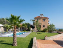 "David", 7-Zimmer-Villa 250 m2 auf 3 Stockwerken. Geräumig und hell, sehr komfortabel und modern eingerichtet: offenes grosses Wohn-/Esszimmer mit Esstisch und Sat-TV (Flachbildschirm), Klimaanlage. Ausgang zur Terrasse. 1 Doppelzimmer mit 1 Doppelbett und Klimaanlage. Ausgang zur Terrasse. Offene Küche (Backofen, Geschirrspüler, 4 Glaskeramikherd Platten, Toaster, Wasserkocher, Mikrowelle, elektrische Kaffeemaschine). Sep. WC. Unteres Geschoss: (geländerlose Treppe) Wohnzimmer mit Küchenblock und Klimaanlage. Ausgang zum Garten. 1 Doppelzimmer mit 1 Doppelbett und Klimaanlage. 1 Kinderzimmer mit 1 Bett und Klimaanlage. Sep. WC. Obergeschoss: (geländerlose Treppe) 1 Kinderzimmer mit 1 x 2 Etagenbetten, Sat-TV (Flachbildschirm), Klimaanlage. Ausgang zum Balkon. 1 Doppelzimmer mit 1 Doppelbett und Klimaanlage. Ausgang zum Balkon. Bad/WC. Grosser Balkon, grosse Terrasse. Terrassenmöbel, Balkonmöbel, Liegestühle, Loggia, Sitzplatz. Schöne Panoramasicht auf das Meer, das Schwimmbad, den Garten und die Landschaft. Zur Verfügung: Waschmaschine, Wäschetrockner, Bügeleisen, Haartrockner. Internet (Wireless LAN, gratis). Bitte beachten: Nichtraucher-Haus. Rauchmelder, Feuerlöscher. 1228337 Der Genuss von Tabakwaren ist nicht gestattet. Mit eingezäuntem Grundstück. Unser Garten wartet auf Sie für einen Sprung in die Entspannung. Damit es auch im Sommer angenehm kühl bleibt, verfügt dieses Ferienobjekt über eine Klimaanlage. Es hat ein Parkplatz. Ein überdachter Parkplatz ist vorhanden. Es gibt ein Pool. Ein privater Pool ist verfügbar. Ein Wäschetrockner ist vorhanden. Mit Reinigung.- Ausstattung