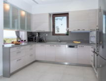 Kato Kalesia 12 km von Heraklion: Grosse, sehr schöne, alleinstehende Villa "David", auf 3 Stockwerken, Baujahr 2013, umgeben von Bäumen und Weinbergen. Am Ortsrand, 3 km vom Zentrum von Kavrochori, ruhige, sonnige Lage, verkehrsberuhigte Zone, 5 km vom Meer, 5 km vom Strand. Zur Alleinbenutzung: Grundstück 1'000 m2 (eingezäunt), grosser, schöner Garten mit Blumen und Bäumen, Liegewiese, Schwimmbad eckig, nicht einsehbar (10 x 4 m, 145 cm tief, saisonale Verfügbarkeit: 01.Apr. - 31.Okt.) mit Innentreppe. Aussendusche, Terrasse, Gartenmöbel, Grillhaus. Wäschewechsel 2 mal wöchentlich. Handtuchwechsel 2 mal wöchentlich. Wohnungsreinigung 2 mal wöchentlich. Parkplatz (für 3 Autos, überdacht) beim Haus. Einkaufsgeschäft 3 km, Lebensmittelgeschäft 3 km, Supermarkt 6 km, Restaurant 2 km, Bar 3 km, Bäckerei 3 km, Café 3 km, Fähre 12 km, Sandstrand "Ammoudara" 5 km. Golfplatz (18 Loch) 37 km, Surfschule 5 km. Nahe gelegene Sehenswürdigkeiten: Historical center of Heraklion 12 km, Knossos Palace 14 km, Archaeological Museum Heraklion 12 km, Historical Museum Heraklion 12 km, Watercity 25 km, Port of Heraklion 12 km. Bitte beachten: Fahrzeug empfohlen. Geeignet für Familien, Babyausstattung auf Anfrage (inkl.). Jugendgruppen nur auf Anfrage. Kavrochori, Heraklion bietet ideale Bedingungen zum Wellenreiten und Surfen. Insbesondere herrlich Wellen, die sowohl Anfängern als auch Fortgeschrittenen eine Menge Freude bereiten werden. Spielen Sie Golf! Mit einer ausdrucksvollen Landschaftskulisse im Hintergrund wird Ihr Golfvergnügen gleich noch um eine Facette bereichert. Golfplätze sind vorhanden.Interior